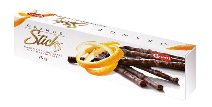 CARLETTI CZEKOLADOWE PALUSZKI POMARAŃCZOWE 75G
